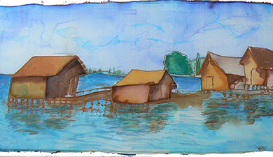 Pfahlbauten in Unteruhldingen, Seidenbild